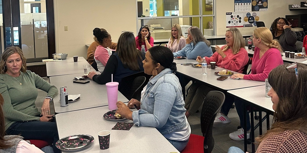 Last Thursday, Women at Work sponsored the Third Thursday event at our Greensboro office! We had an exciting trivia game that really got everyone thinking—centered around breast cancer awareness and celebrating the accomplishments of women in arts, entertainment, and sports. A huge shoutout to our trivia champs for their impressive win Nneka Paige, Anitra Simpson, Kym Harris & Priscilla Garrett.